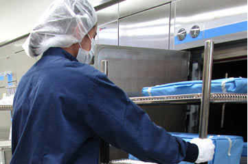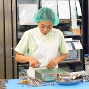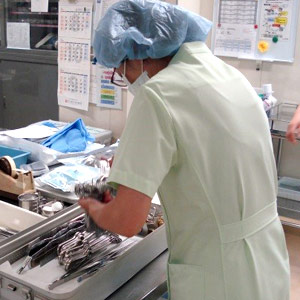 手術・処置・検査に使った使用済みの器材(ハサミやピンセット等)を回収し、洗浄・滅菌を行なって、また安全に使用できる状態に処理し手術室・病棟・外来に供給するお仕事です。
