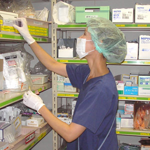 病院内で使用される薬品や物品(ガーゼや注射針などの診療材料、日用品など)の発注・在庫管理、部署ごとの定数管理、病院内倉庫で物品をピッキングし各部署へ搬送・供給するお仕事です。