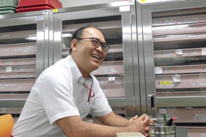 子どもが小さい頃、持病の喘息で何度も入退院を繰り返し医師や看護師さんにとても良くしていただきました。仕事を探していた時、お世話になった病院の求人募集を目にして迷わず応募。外来の滅菌業務のお仕事についたのが12年前です。その後オペ室、SPD業務とさまざまな業務を経験し8年目には病院の副責任者として現場のとりまとめを務めるようになり、ちょうど10年目に社員に登用されました。